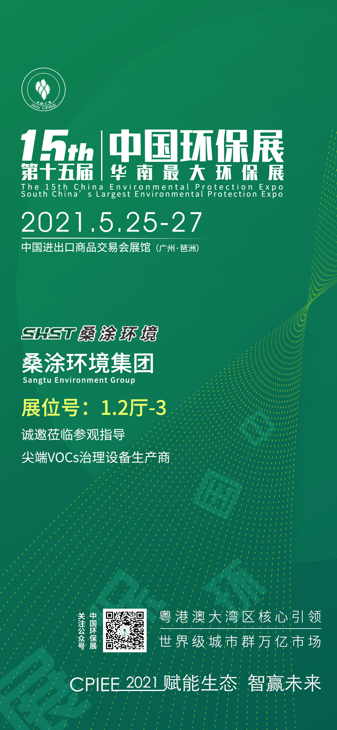 華南最大環(huán)保展、中國環(huán)保產業(yè)年度盛典——第十五屆中國廣州國際環(huán)保產業(yè)博覽會(中國環(huán)保展)即將于2021年5月25日在中國進出口商品交易會展館震撼開幕,展會為期三天,將全面展示水、大氣、固廢、土壤、監(jiān)測等生態(tài)環(huán)境治理前沿技術及最佳解決方案。尖端VOCs治理設備生產商——桑涂環(huán)境搶先訂得270㎡豪華展臺,展位號1.2廳3號展臺,將攜多款有機廢氣治理設備及最新VOCs治理方案隆重亮相!敬請期待!